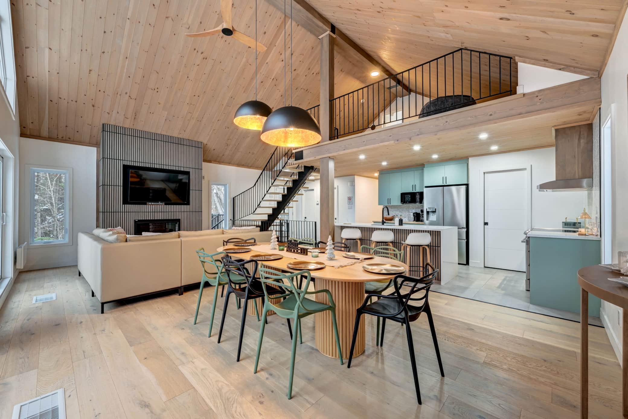 Ce chalet de 3000 pi carré est situé dans un domaine privé à 30 minutes de la station de ski du Mont-Tremblant et 20 minutes de la ville de Mont-Tremblant dans les Laurentides en bordure de l’Outaouais.